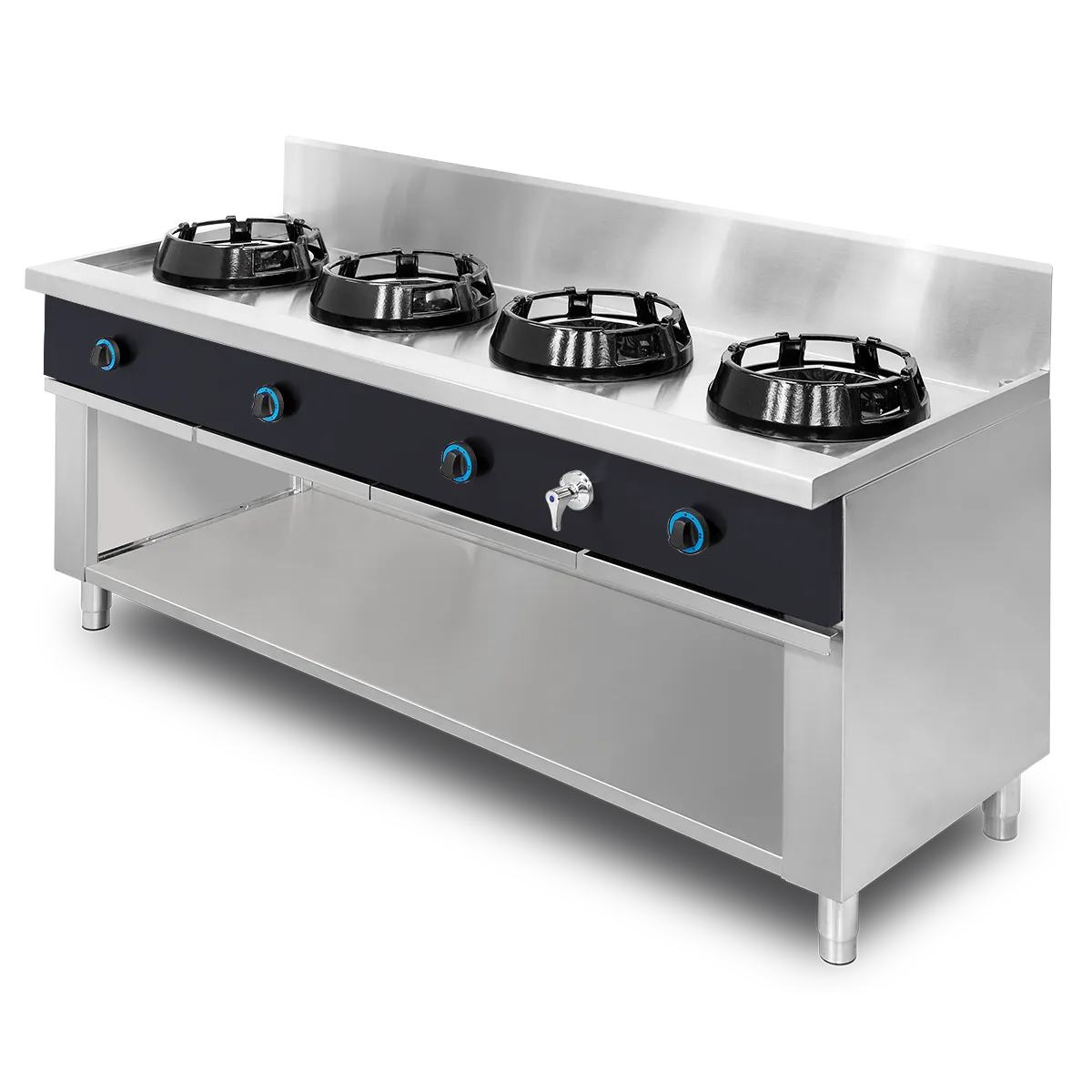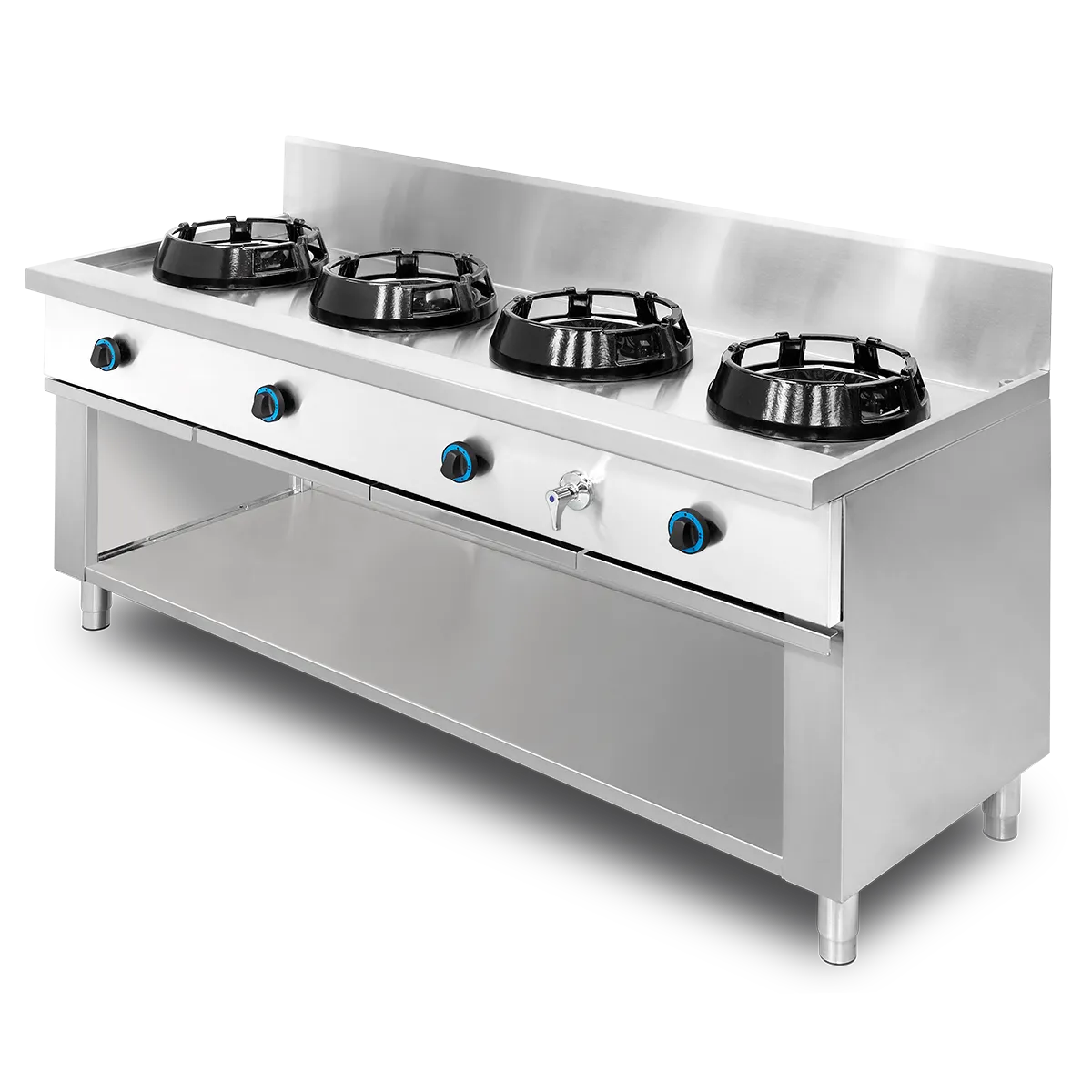 Estos modelos representan la esencia de NTGAS: ingeniería robusta, potencia controlada, diseño ergonómico y fiabilidad probada en cocinas profesionales reales. Una estación wok cuádruple creada para rendir sin descanso, adaptarse al ritmo extremo del servicio y elevar cada preparación con potencia atmosférica auténtica.