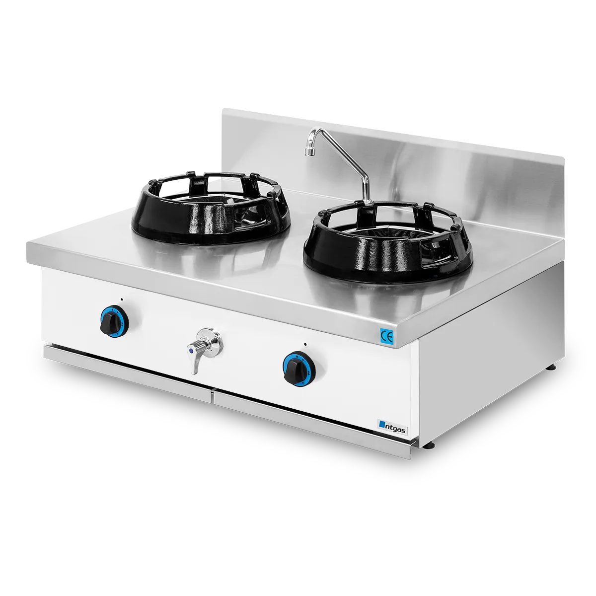 Las Cocinas Wok Sobremesa NTGAS PAV/02-2C-WL y PAV/02-2V-WL representan el nivel superior dentro de la Serie Wok Estándar de NTGAS: dos estaciones de cocción profesionales integradas en un único módulo compacto, robusto y diseñado para ofrecer una productividad excepcional en los entornos gastronómicos más exigentes. Concebidas para chefs que necesitan trabajar con altas temperaturas, cambios frecuentes de fuego y ritmos intensivos de servicio, estas cocinas dobles proporcionan potencia, estabilidad y un control térmico inmediato, fundamentales en la cocina asiática auténtica.