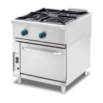 La estructura soldada en acero inoxidable AISI 304 garantiza máxima resistencia y durabilidad, mientras que las parrillas de fundición extraíbles facilitan la estabilidad de los recipientes y simplifican la limpieza diaria. El diseño cerrado con horno integrado aporta un plus de seguridad, orden y profesionalidad en la cocina.