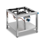 El diseño abierto del mueble alrededor del quemador proporciona un acceso cómodo y facilita la limpieza, mientras que su parrilla de fundición aporta una gran estabilidad a los recipientes de gran volumen, algo fundamental en procesos de cocción de grandes cantidades. Además, cuenta con un estante inferior de acero inoxidable que permite tener a mano utensilios o ingredientes, optimizando el espacio y la organización en cocina.